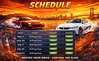 Bay Area Drifting School is Northern California’s premier drift school, offering professional drifting instruction and advanced car control training at Thunderhill Raceway Park. Serving drivers from across the Bay Area, our programs help beginners and seasoned enthusiasts build confidence, skill, and control in a safe, structured environment.